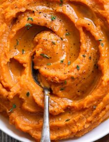 - Increase the sweetness in the mashed sweet potatoes as desired (by adding more maple syrup or brown sugar).