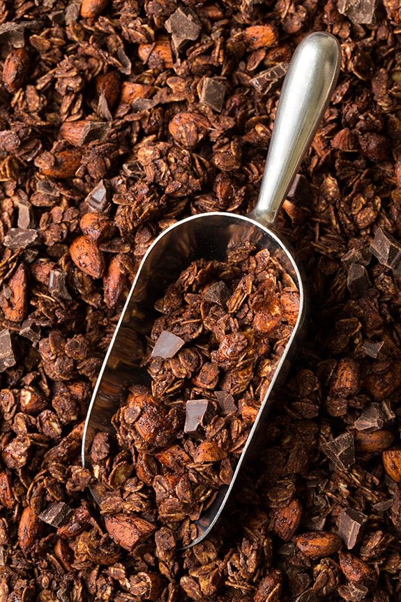 - Make it dark chocolate granola with chunks of dark chocolate chips, unsweetened cocoa powder, or cacao powder