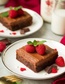 You’ll love not only their chocolate decadence but also their ease of preparation, and they only require a handful of simple ingredients. Plus no mixer is required and they bake up quickly. No waiting 40+ minutes for a full size pan of brownies!