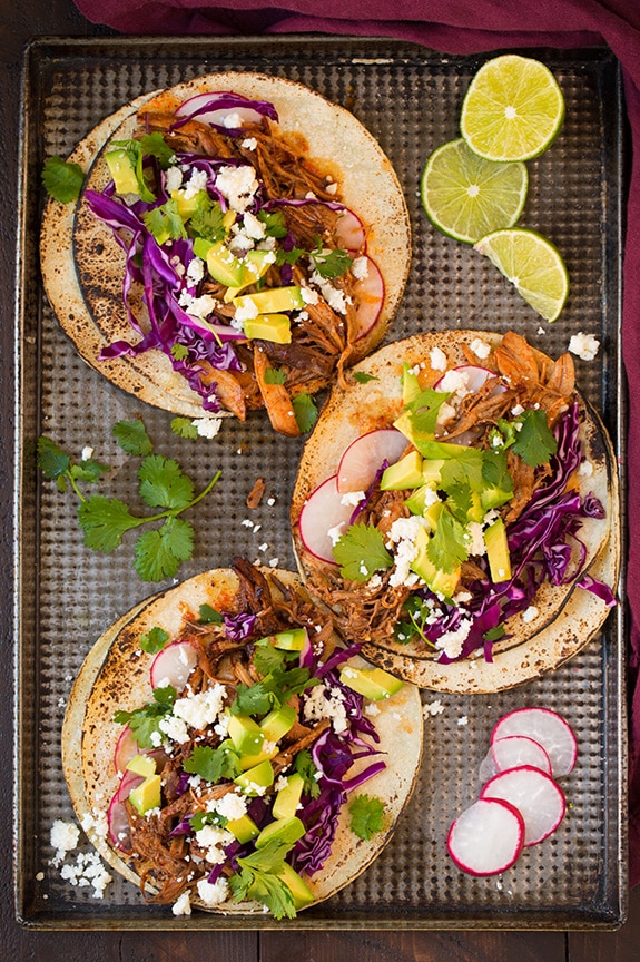 Just be sure to load up these shredded pork tacos with all the that listed goodness… although I think I’d be happy just to eat a bowl of this pork.